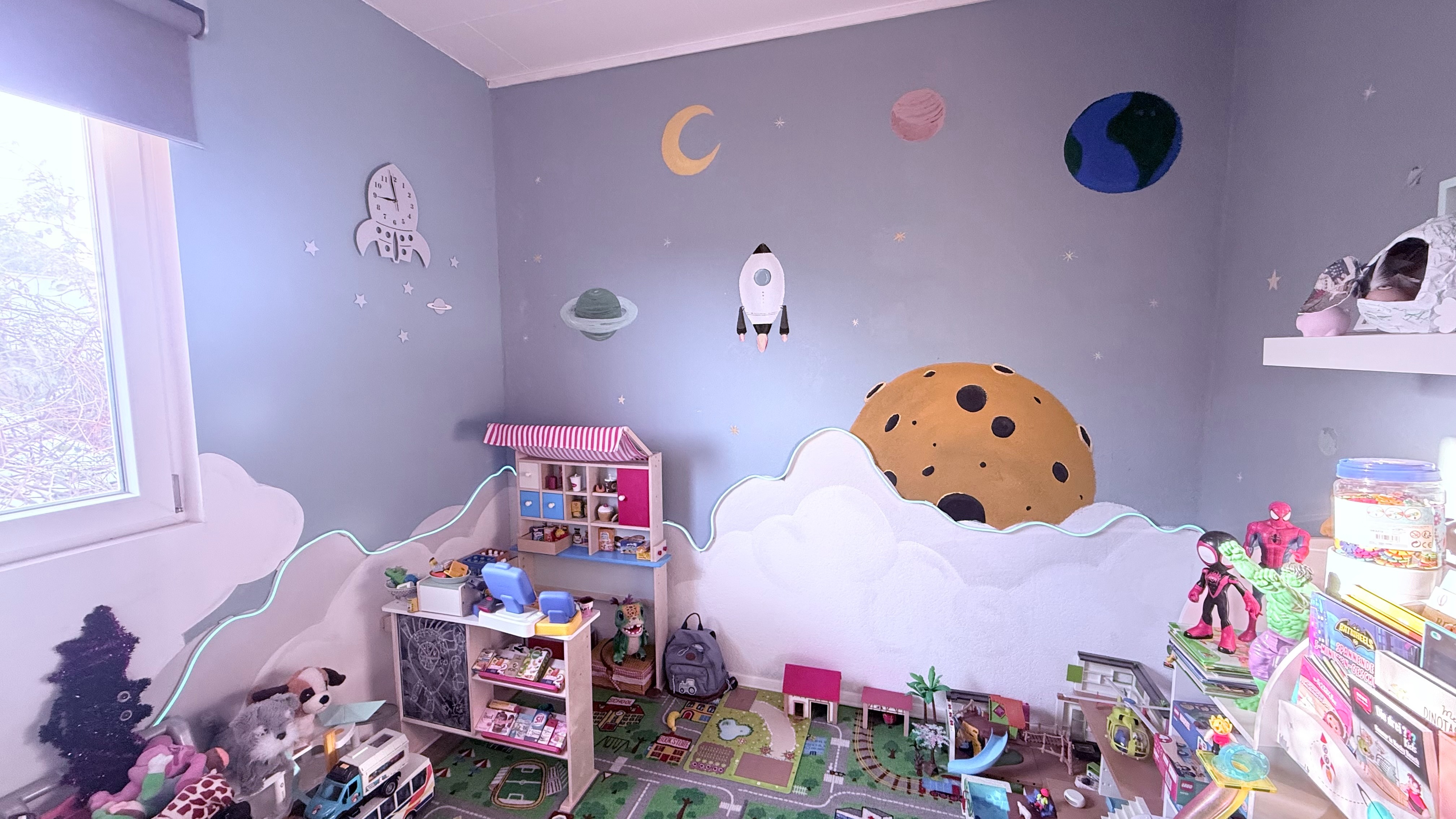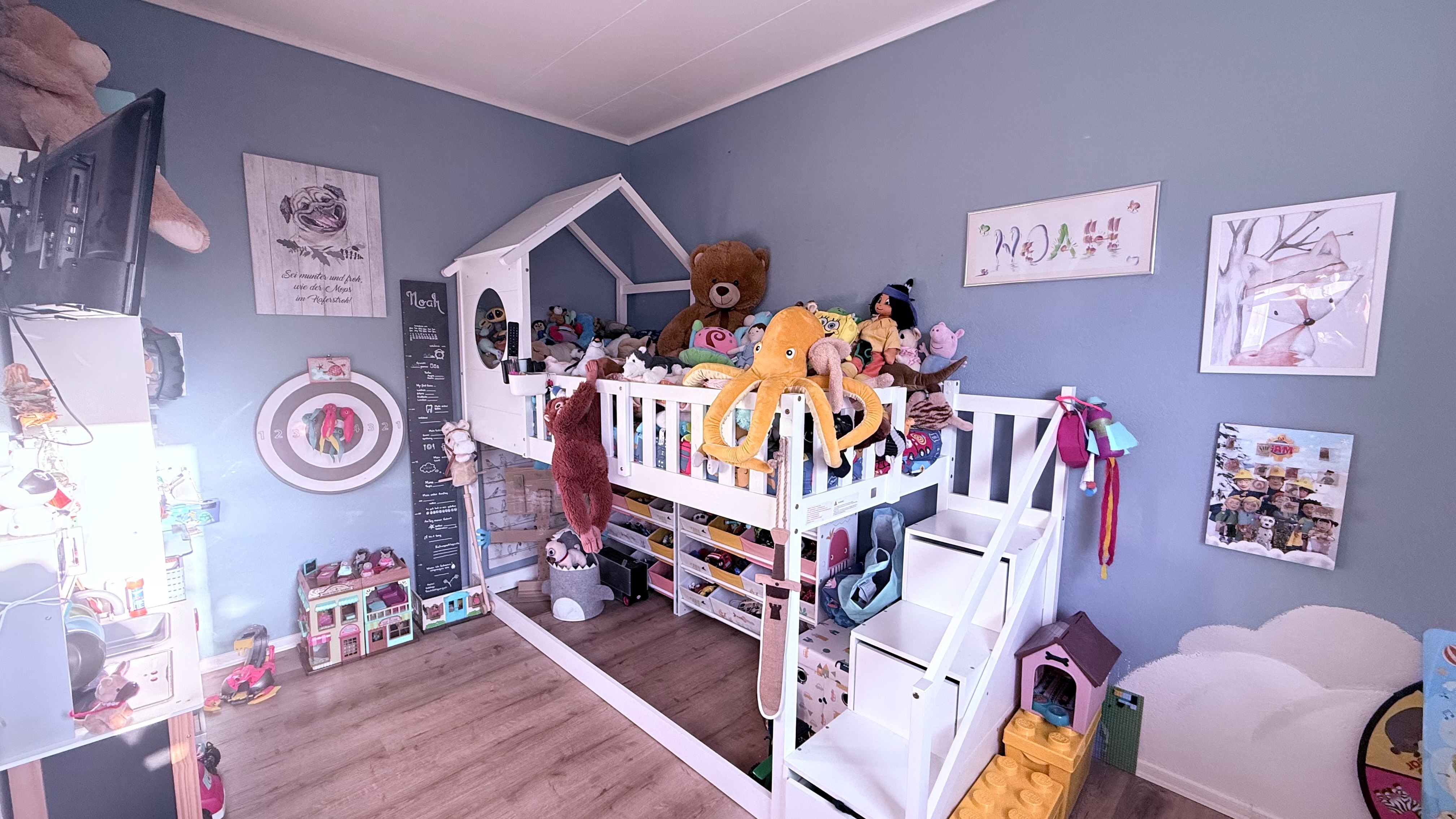 Das Kinderzimmer, welches ursprünglich zwei Zimmer waren, wurde in ein großzügiges Zimmer verwandelt und mit elektrischen Verdunkelungs-rollos ausgestattet.