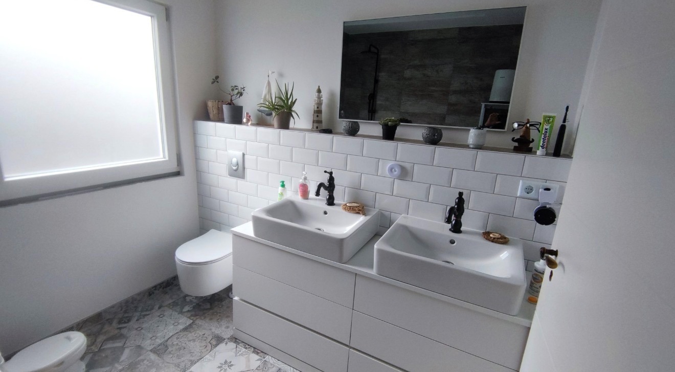 - Ausstattung des Bades Badewanne Dusche Fenster