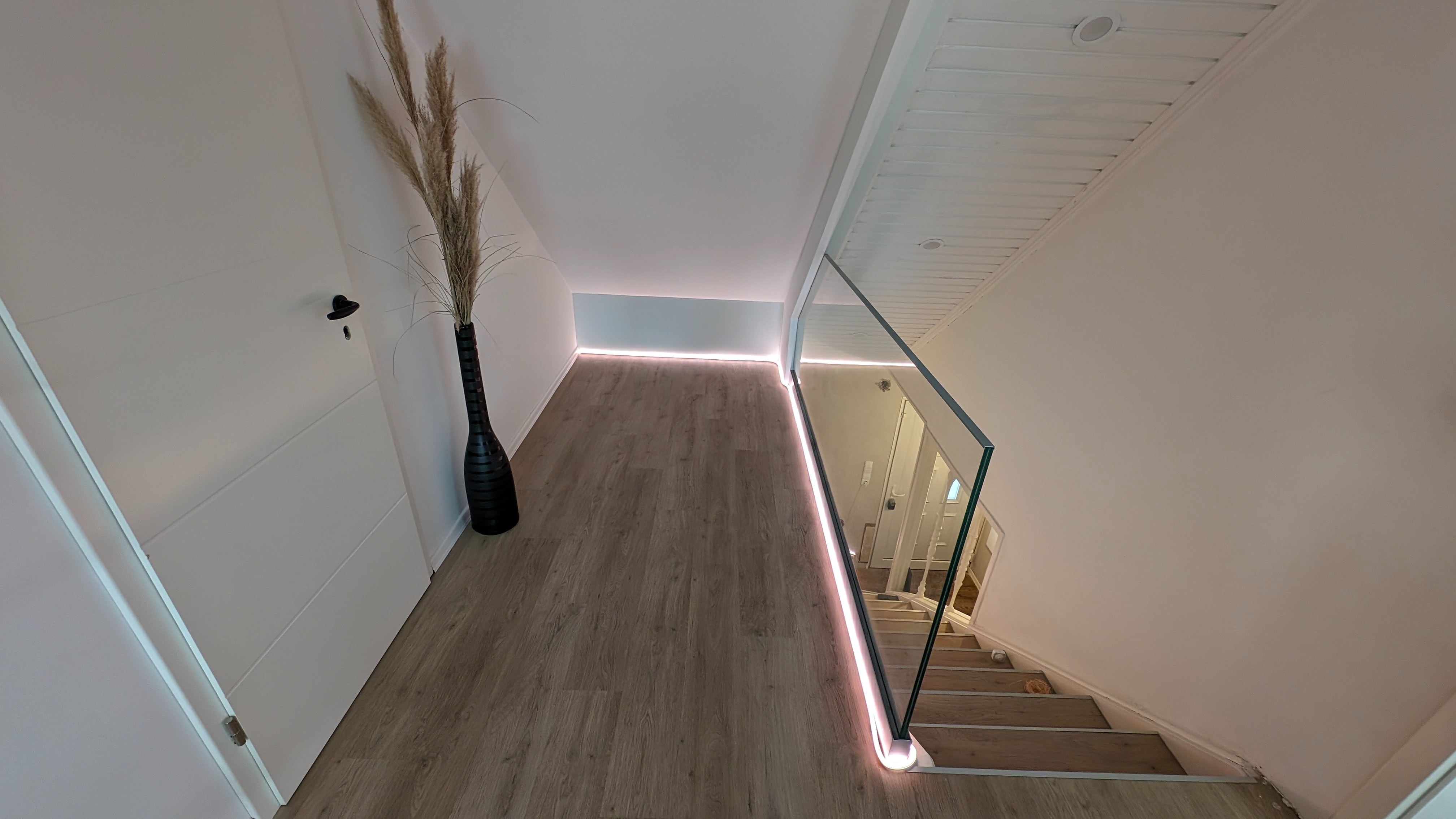 Über die beleuchtete Treppe gelangt man in die Galerie, welche optisch ein echtes Highlight ist.