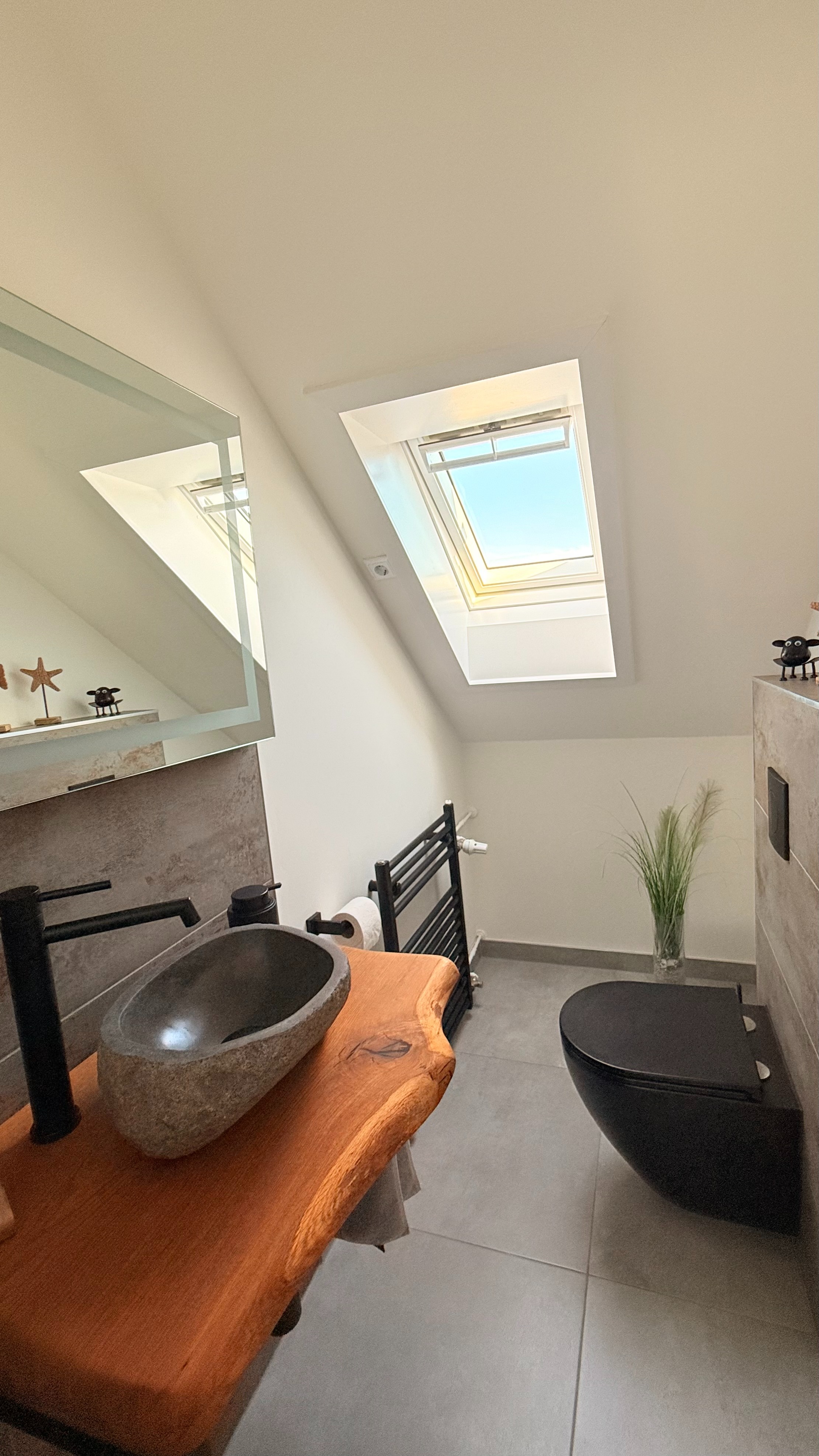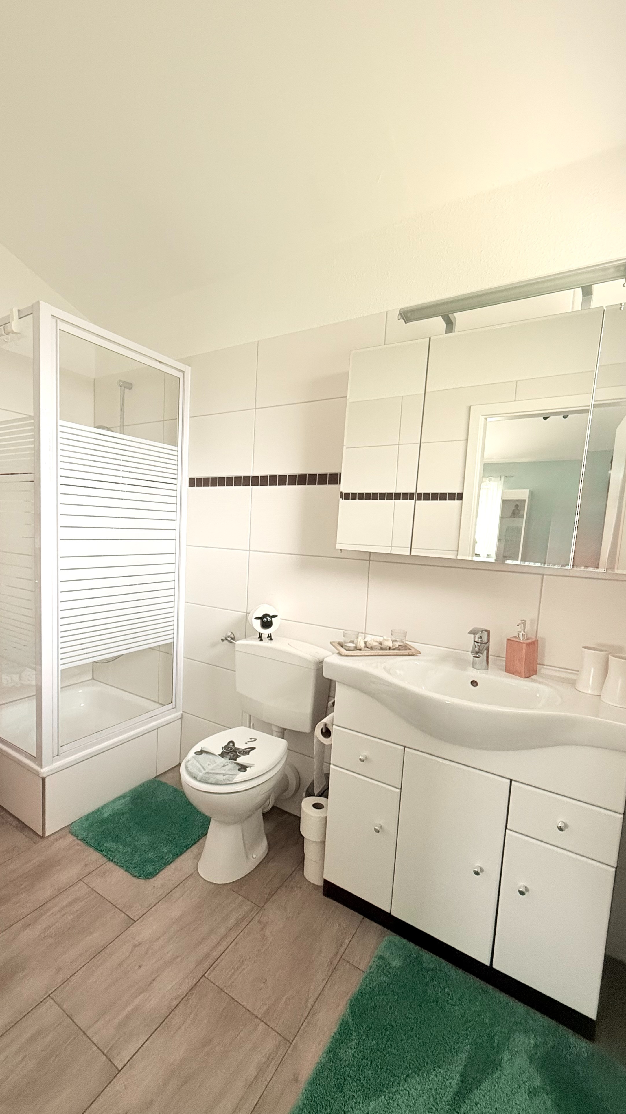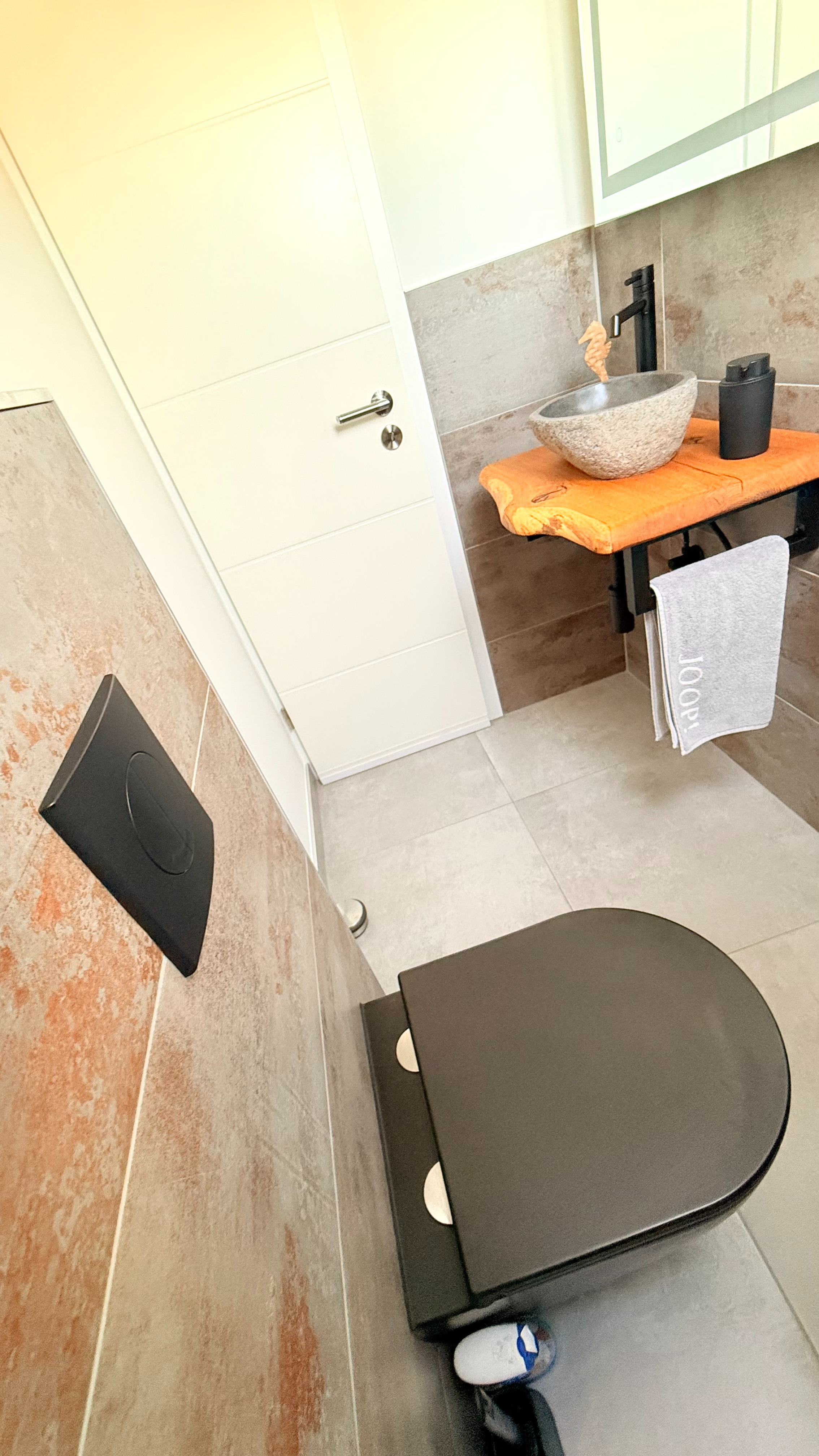 Nebenan befindet sich das Gäste-WC, welches durch sein besonders Stilvolles Ambiente ein kleines Highlight ist.