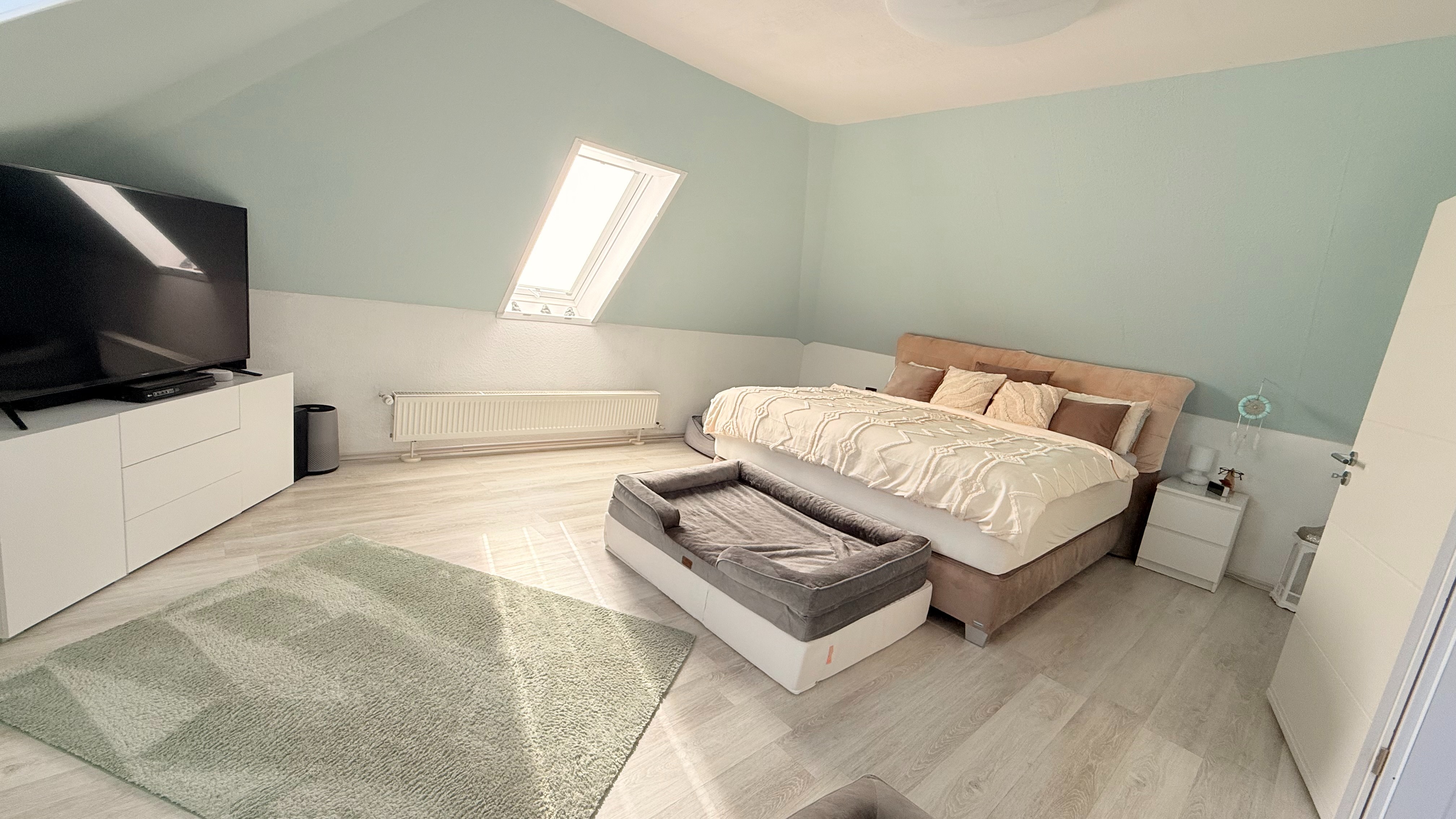 Im ersten Geschoss befindet sich das helle 24m² große Schlafzimmer.